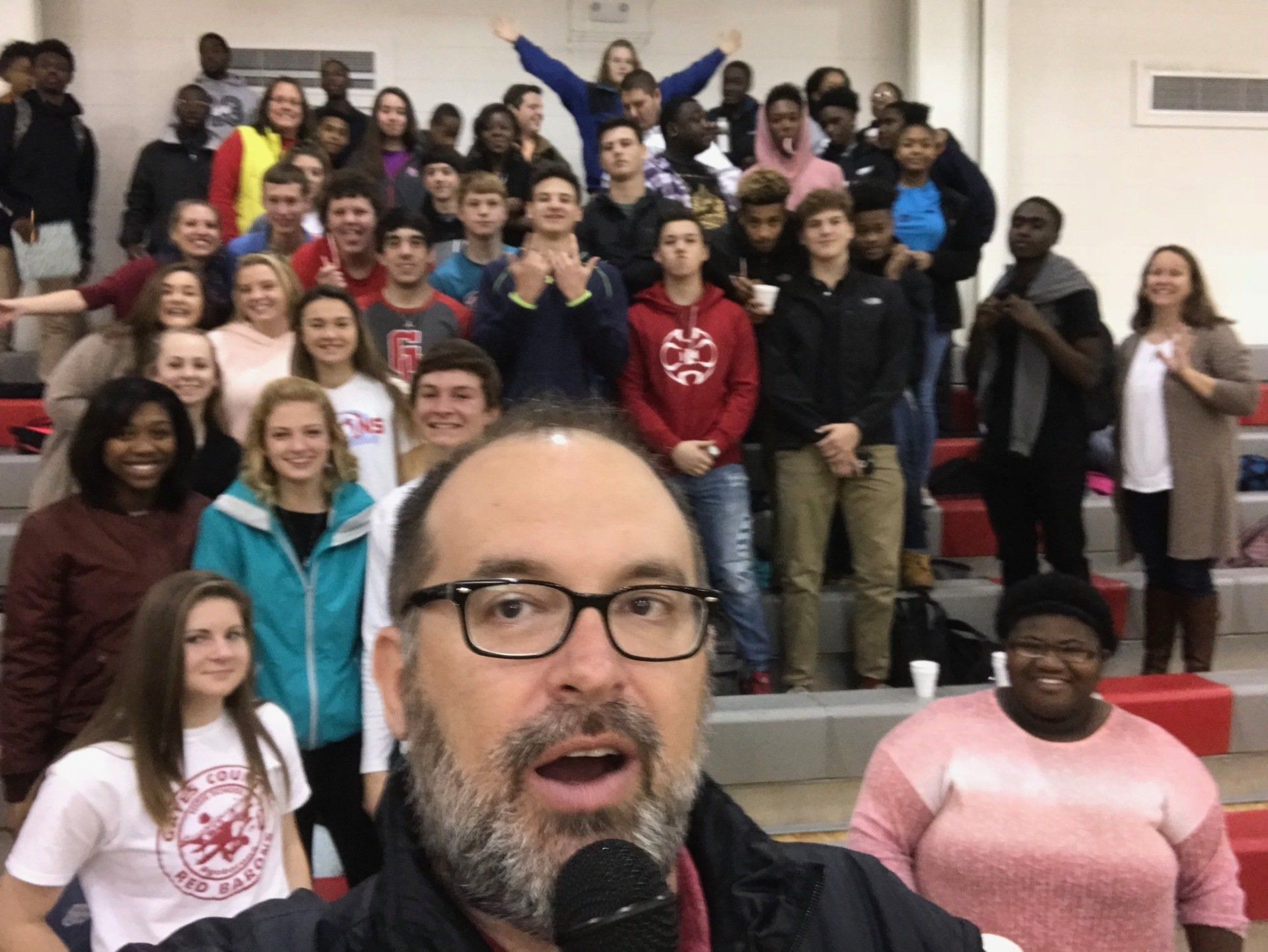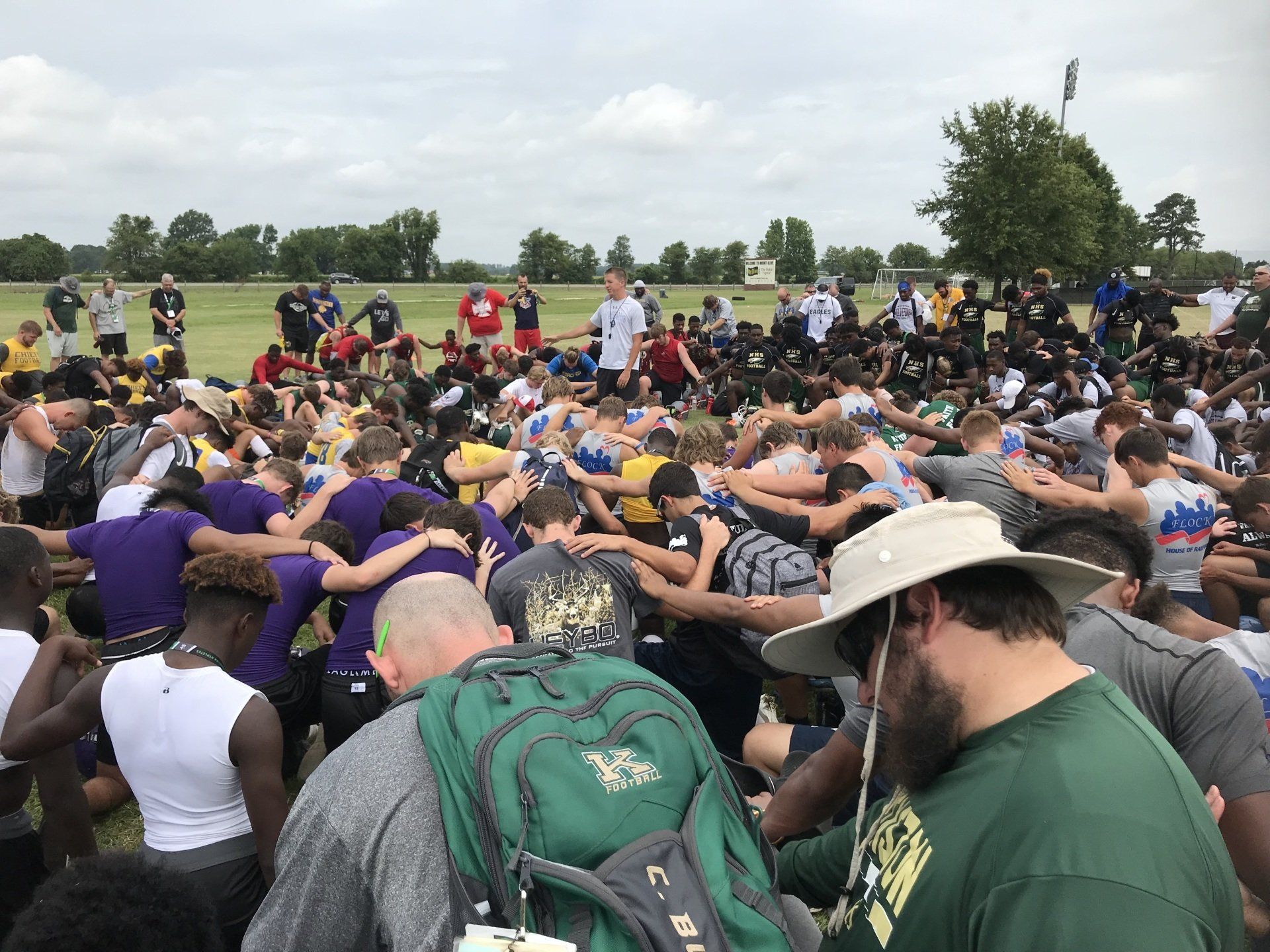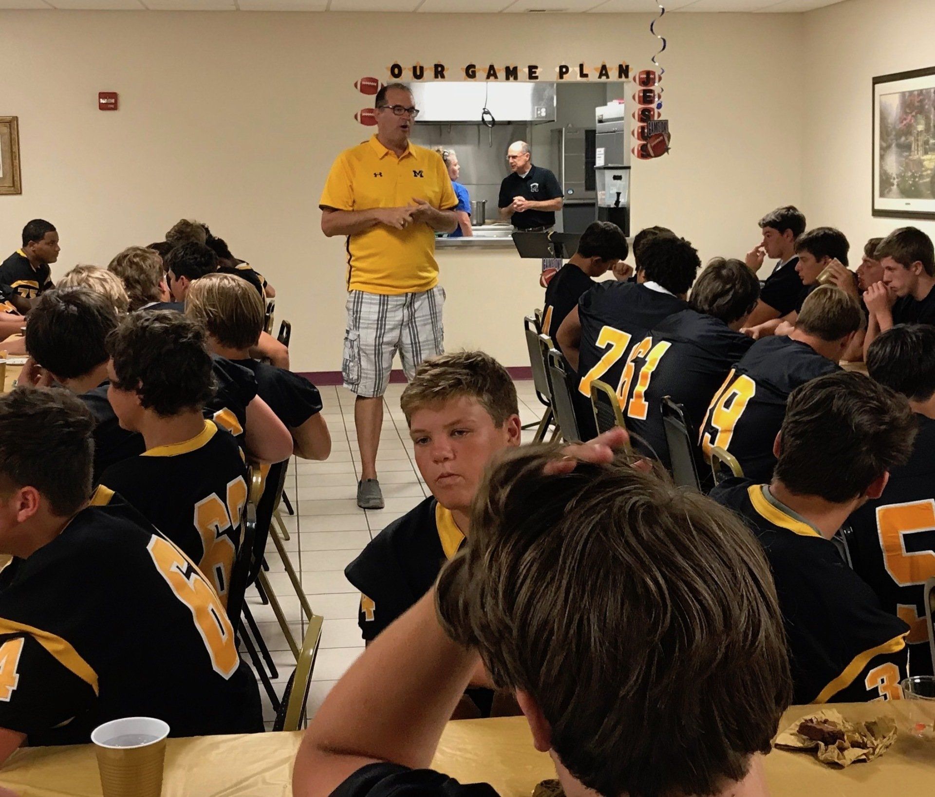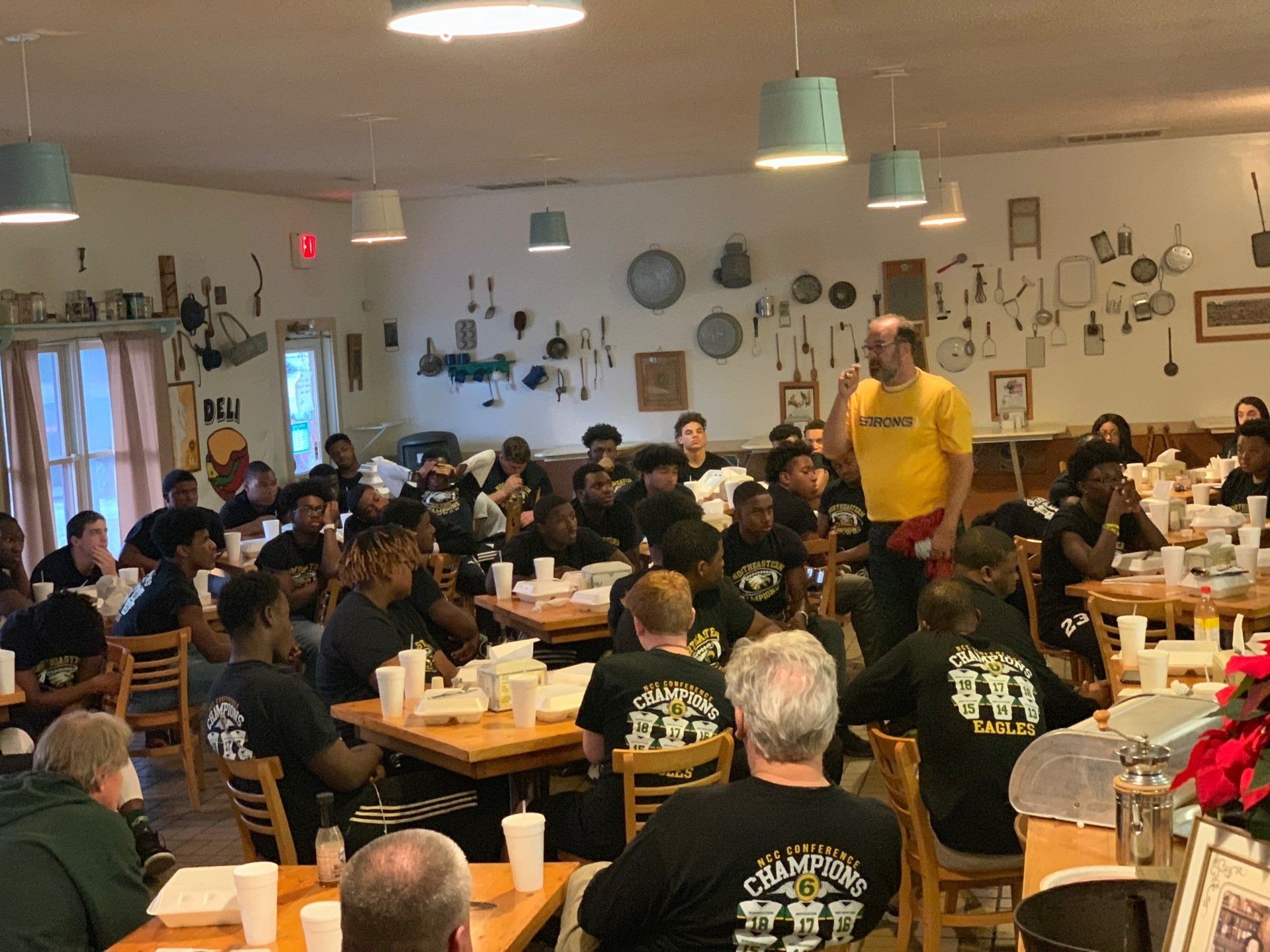 Scott speaks to the Manteo High football team for a pre-game chapel